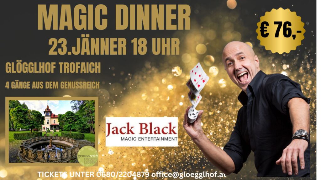 MAGIC DINNER IM GLÖGGLHOF MIT JACK BLACK – JÄNNER 2026 – Das ultimative Weihnachtsgeschenk